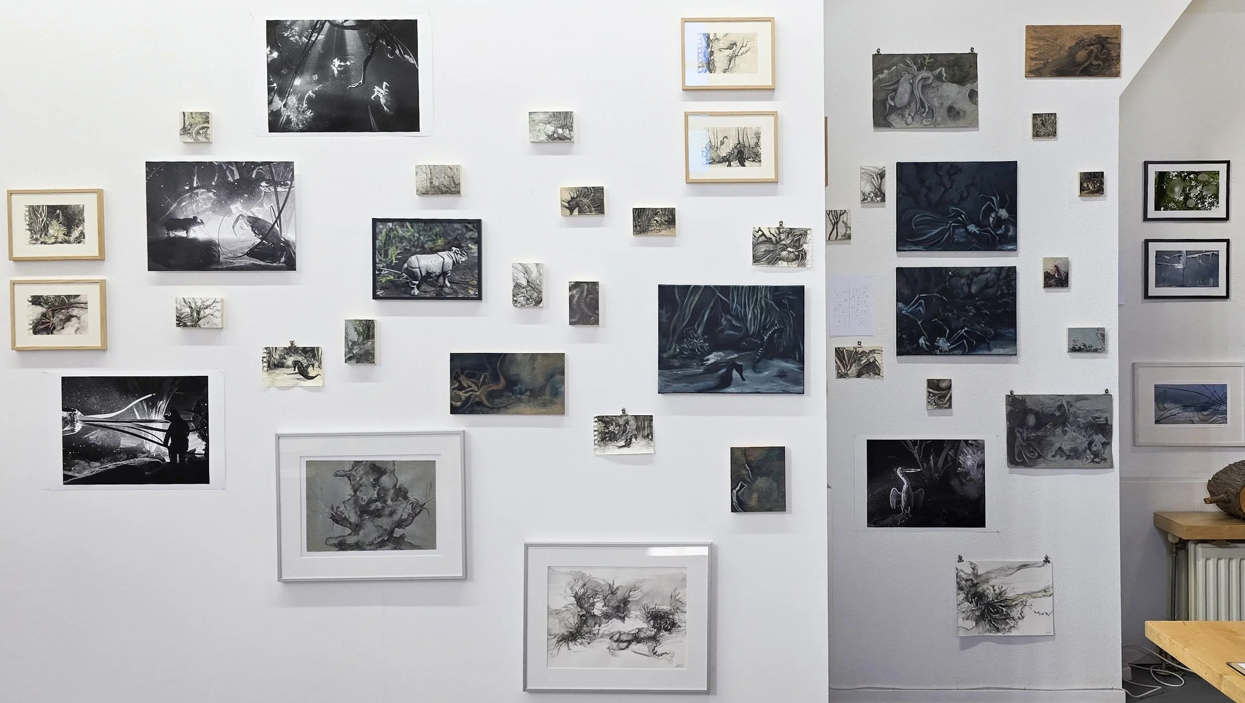 Door mijn fascinatie en bestudering van Bestiaria uit de Middeleeuwen en het ontdekken van wetenschappelijke werken uit de Renaissance zoals De Aquatilibus van Gesner (1553), waar het (nog) niet weten ruimte biedt voor verbeelding, beweegt mijn opvatting over dat wat men ziet of denkt te zien, mee. De mogelijkheid bestaat dat met wat je niet weet, je de verbeelding als bron kunt inzetten.